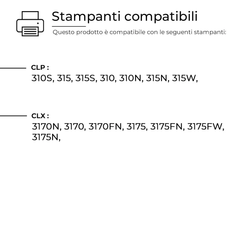 Questo Toner per Samsung è pienamente compatibile con molteplici modelli di stampanti SAMSUNG e assicura una resa di stampa elevata e costante, paragonabile a quella dei prodotti originali. Progettato per offrire affidabilità e precisione.