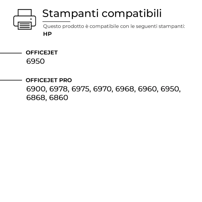 Queste Cartucce per HP sono pienamente compatibili con molteplici modelli di stampanti HP e assicurano una resa di stampa elevata e costante, paragonabile a quella dei prodotti originali. Progettate per offrire affidabilità e precisione.