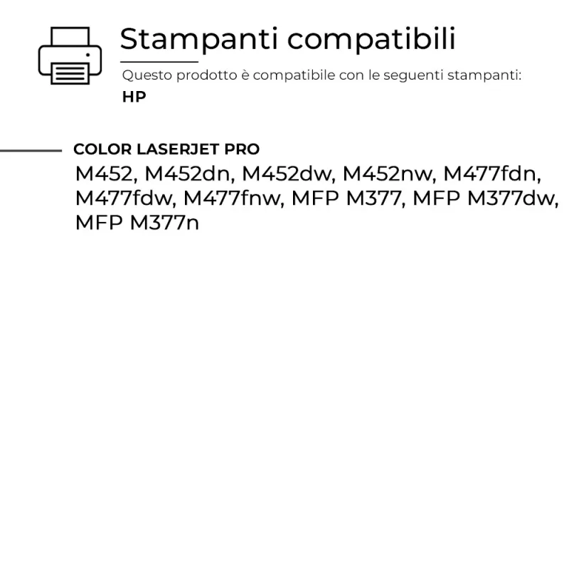 Questo Toner per HP è pienamente compatibile con molteplici modelli di stampanti HP e assicura una resa di stampa elevata e costante, paragonabile a quella dei prodotti originali. Progettato per offrire affidabilità e precisione.