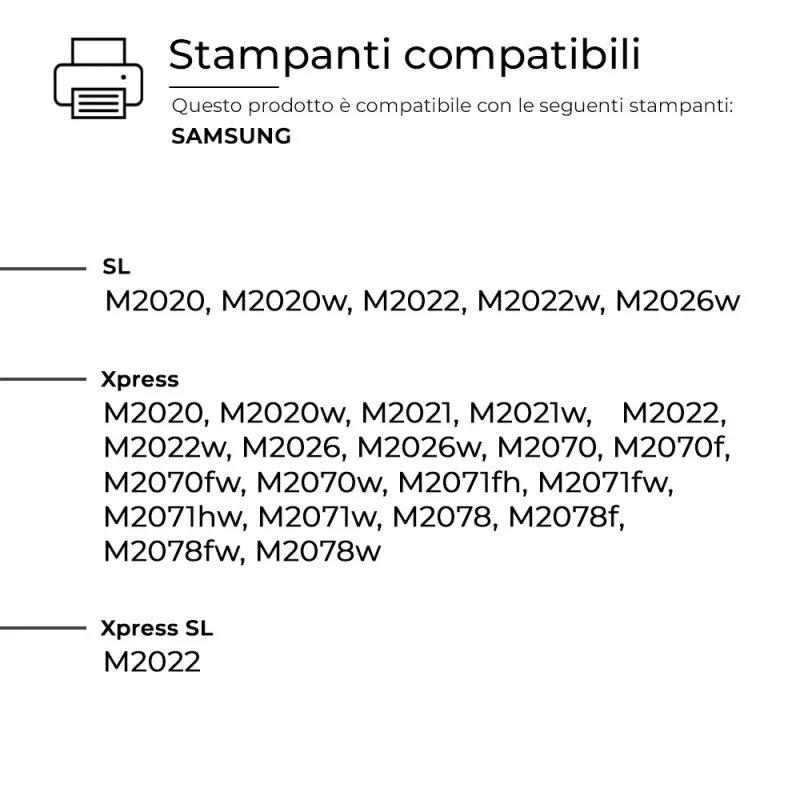 - Compatibili con tutte le stampanti Samsung che supportano il formato MLT-D111L / MLT-D111S.