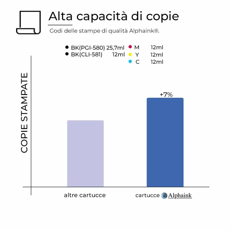 Scegli Alphaink, azienda leader nella vendita online di cartucce compatibili, e porta la qualità professionale nel tuo ufficio con le cartucce compatibili per CANON PGI580CLI581XXLKIT5.