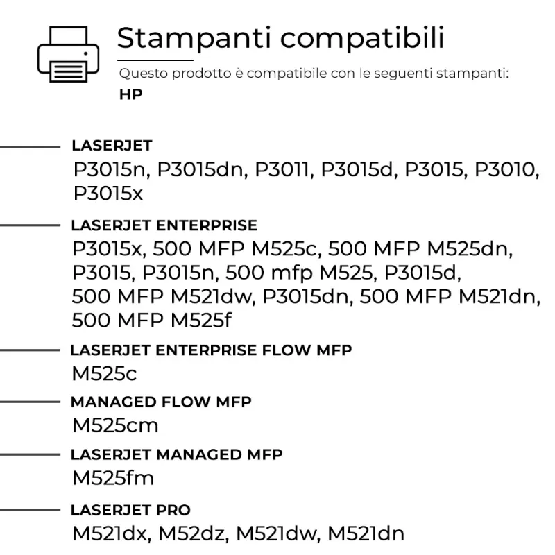 Questo Toner per HP è pienamente compatibile con molteplici modelli di stampanti HP e assicura una resa di stampa elevata e costante, paragonabile a quella dei prodotti originali. Progettato per offrire affidabilità e precisione.