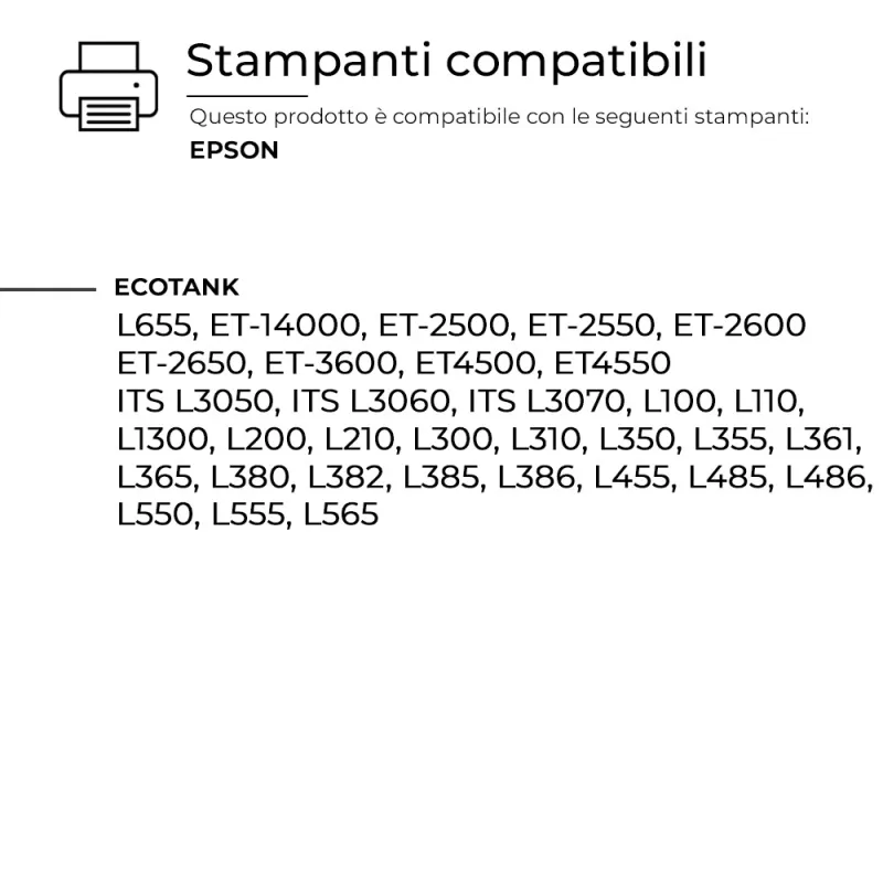 Queste Cartucce per Epson sono pienamente compatibili con molteplici modelli di stampante EPSON e assicurano una resa di stampa elevata e costante, paragonabile a quella dei prodotti originali. Progettate per offrire affidabilità e precisione.