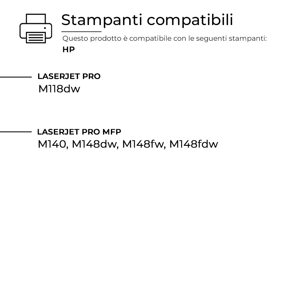 - Piena compatibilità con stampanti HP LaserJet Pro serie M118, M148, M149 e modelli equivalenti.