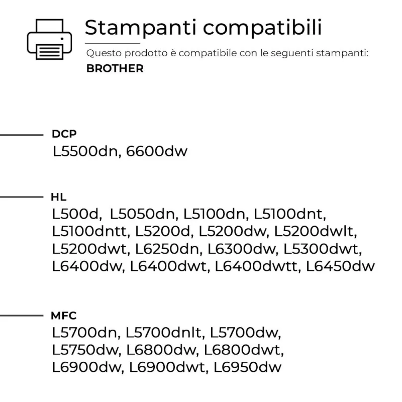 - Compatibili con tutte le stampanti Brother che supportano il toner TN-3480.