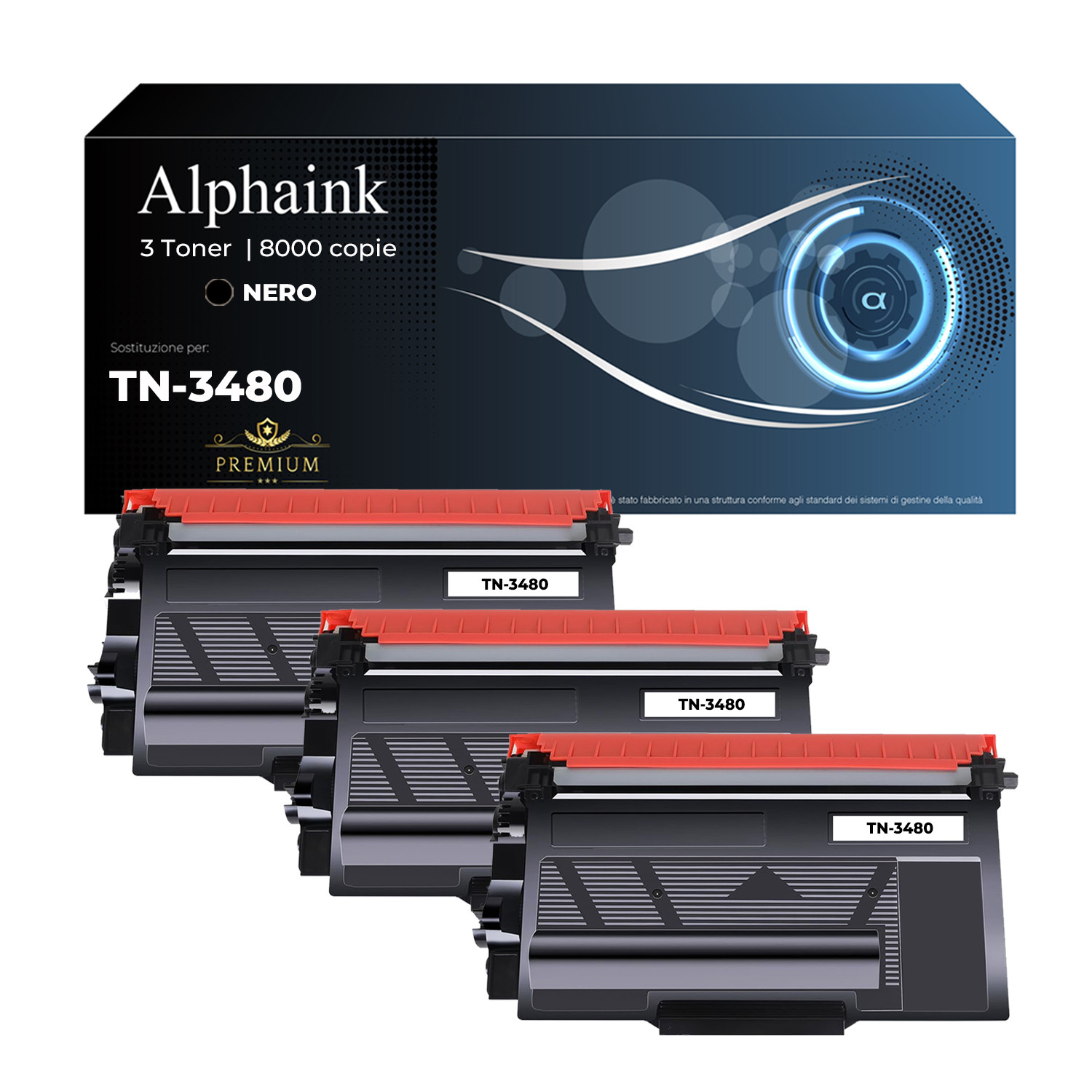 Kit 3 Toner TN-3480 Nero Compatibili per Brother – 8000 copie | Alphaink®