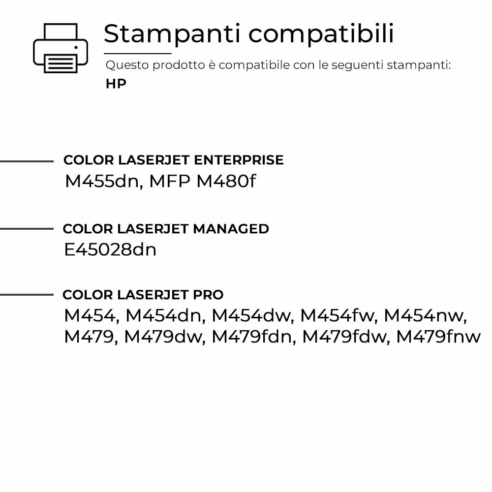 Questo Toner per HP è pienamente compatibile con molteplici modelli di stampanti HP e assicura una resa di stampa elevata e costante, paragonabile a quella dei prodotti originali. Progettato per offrire affidabilità e precisione.