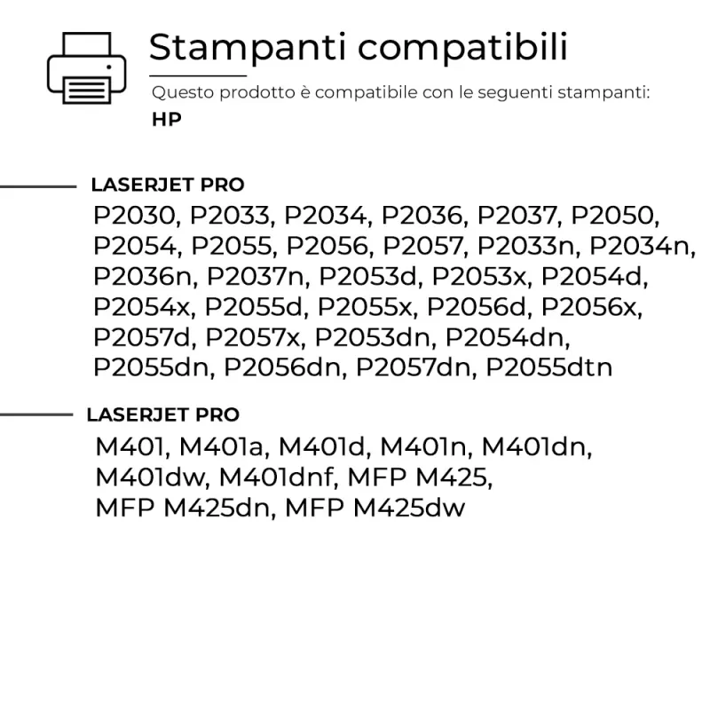 Questo Toner per HP è pienamente compatibile con molteplici modelli di stampanti HP e assicura una resa di stampa elevata e costante, paragonabile a quella dei prodotti originali. Progettato per offrire affidabilità e precisione.