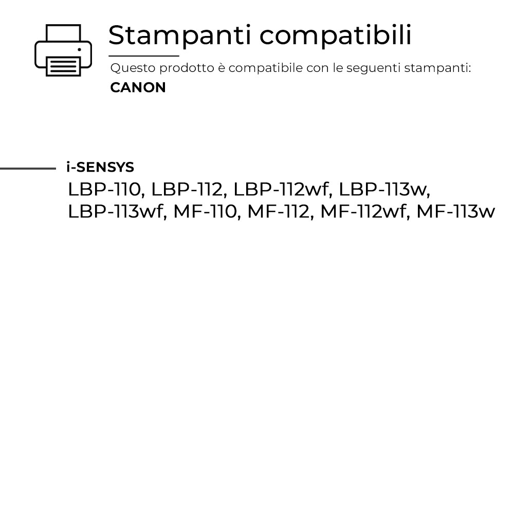 Questo Toner per Canon è pienamente compatibile con molteplici modelli di stampanti CANON e assicura una resa di stampa elevata e costante, paragonabile a quella dei prodotti originali. Progettato per offrire affidabilità e precisione.