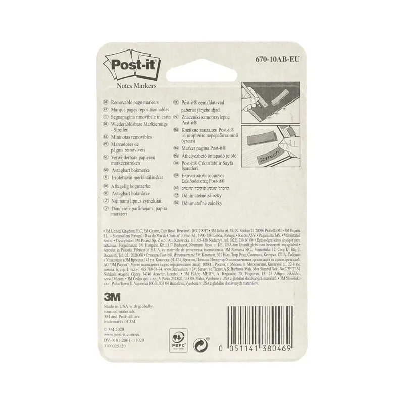 10 Blocchetti da 12,7 mm x 44,4 mm x 100 segnapagina -670-10AB-EU certi?cati PEFC