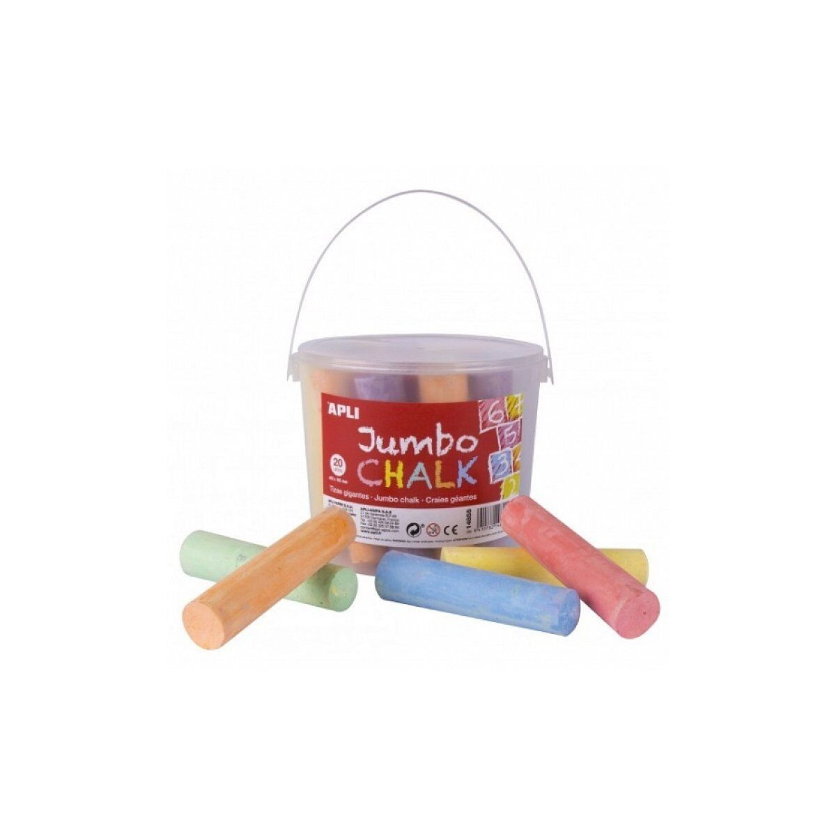 APLI Kids - Scatola di gesso rotonda, 20 pezzi rotondi Jumbo in colori assortiti: giallo, verde, rosso, blu, arancione e lilla. Ogni confezione contiene 20 gessetti di dimensioni Ø 25 x 105 mm. Gessetti realizzati con solfato di calcio a basso contenuto di residuo, senza polvere. Ideali per scrivere, disegnare e colorare su lavagne e pavimenti. Adatto per l'uso scolastico. Può contenere piccole parti. Pericolo di soffocamento. Da utilizzare sotto la supervisione di un adulto.