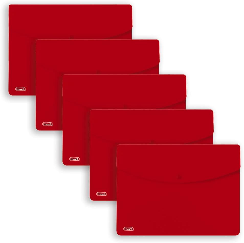 FAVORIT Buste con Bottone Sprint, A4, Polipropilene, Opaco, Confezione da 5 pezzi - Rosso