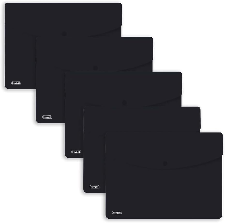 FAVORIT Buste con Bottone Sprint, A4, Polipropilene, Opaco, Confezione da 5 pezzi - Nero