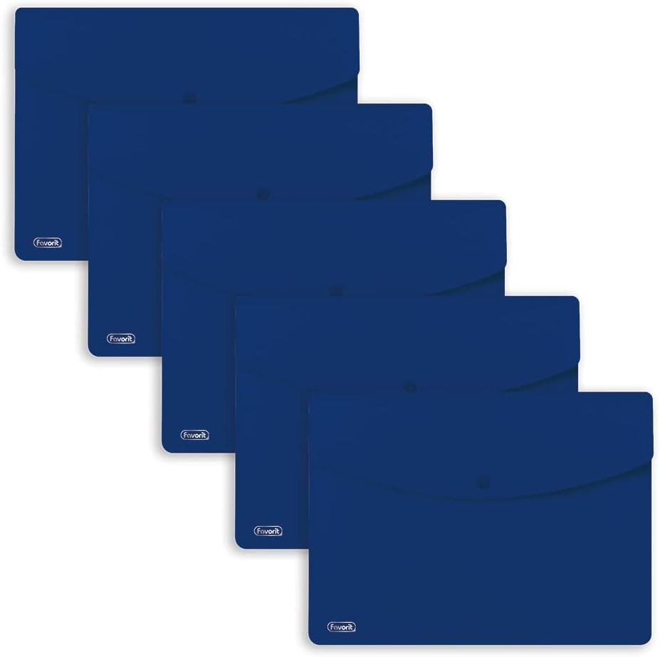 FAVORIT Buste con Bottone Sprint, A4, Polipropilene, Opaco, Confezione da 5 pezzi - Blu