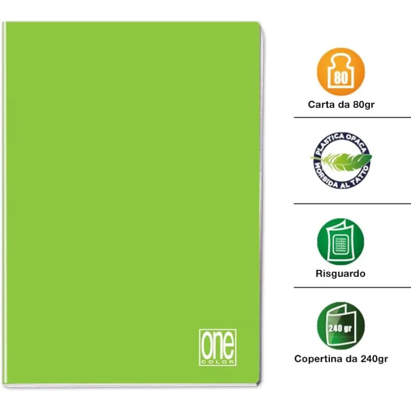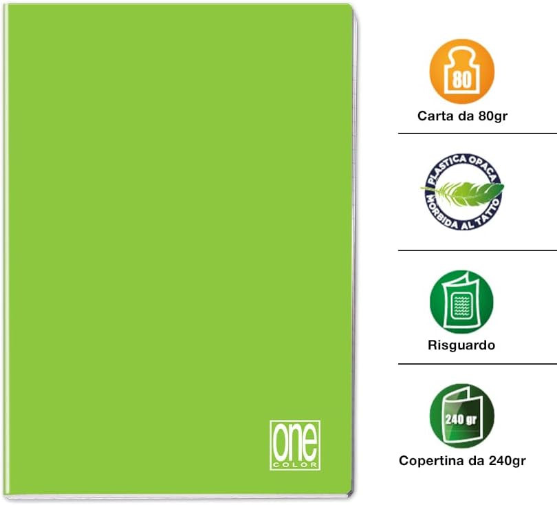 - Formato A4: Il Maxi quaderno One Color ha un pratico formato A4, che lo rende comodo da trasportare e da utilizzare ovunque, sia a scuola che in ufficio.