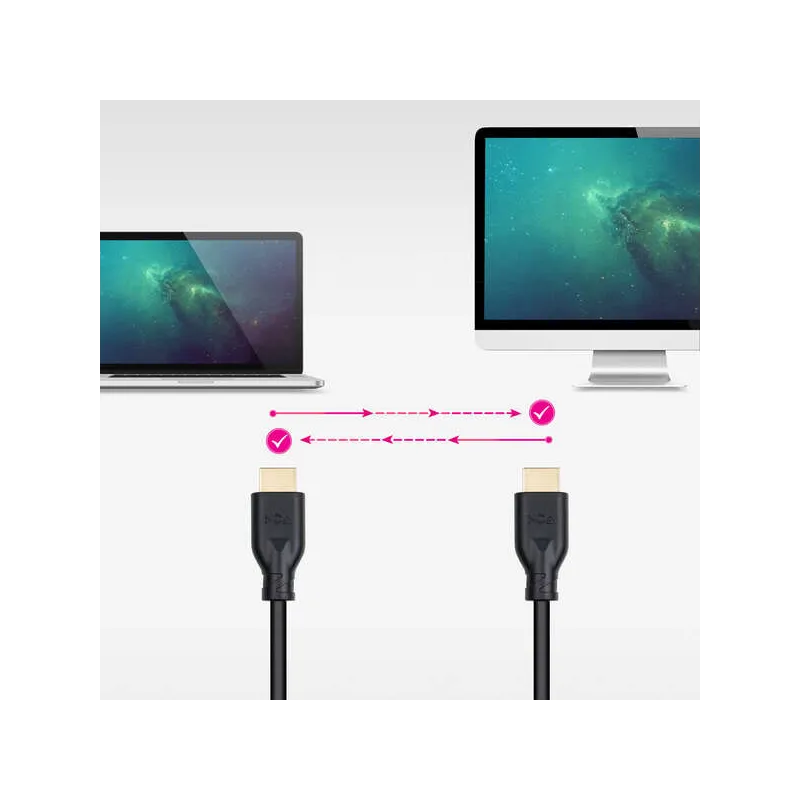 Il design compatto da 0,5 m evita ingombri e matasse di cavo, perfetto per configurazioni ordinate tra dispositivi posti vicini. Il colore nero lo rende elegante e adatto a qualsiasi ambiente, dal salotto all’ufficio.