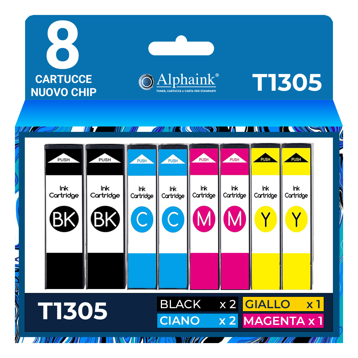 Scegli Alphaink, azienda leader nella vendita online di cartucce compatibili, e porta la qualità professionale nel tuo ufficio con le cartucce compatibili per EPSON T1305KIT8.