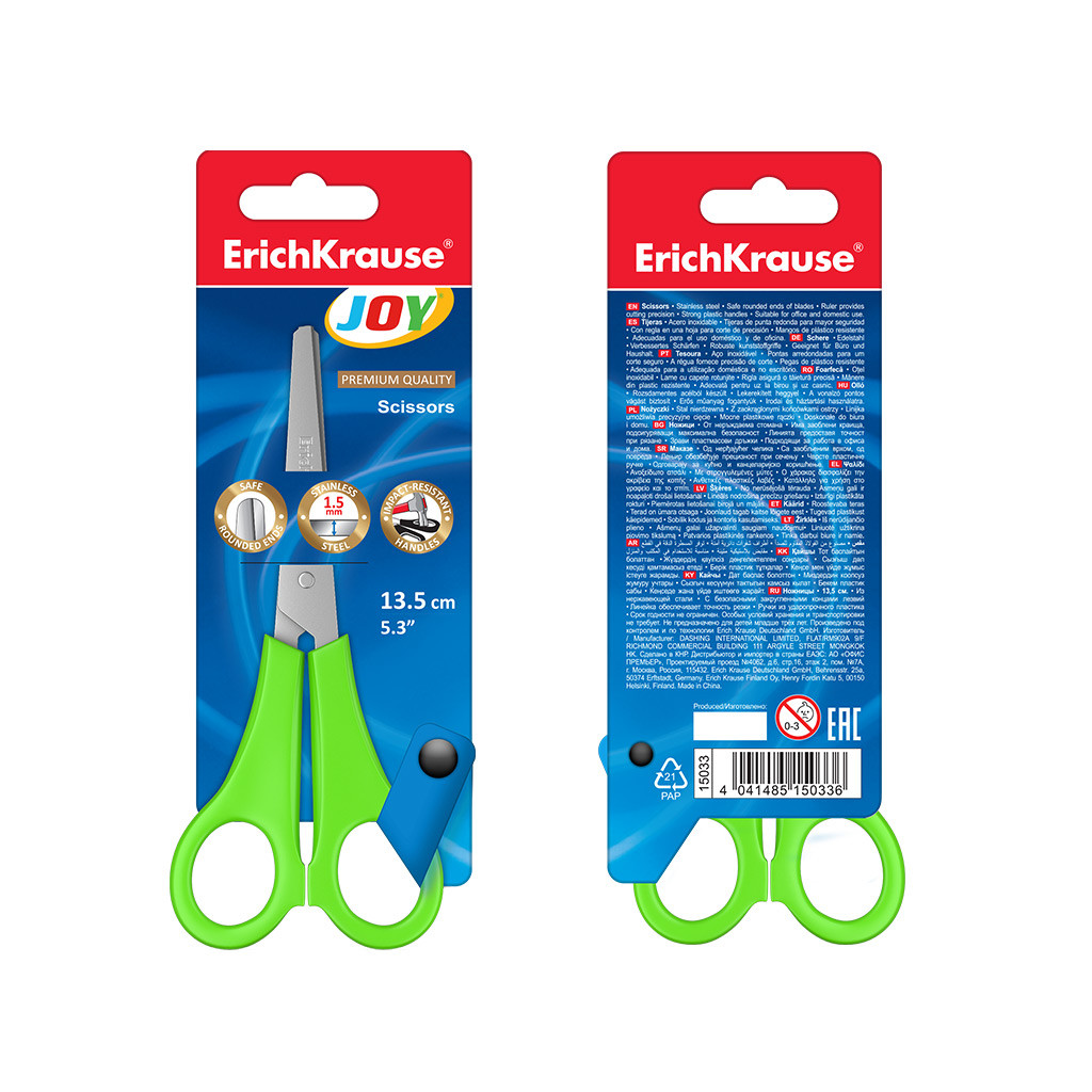 Forbici Erichkrause Joy - Lame in acciaio inox - Estremità arrotondate - Impugnature in plastica per uso intensivo - Colori ass