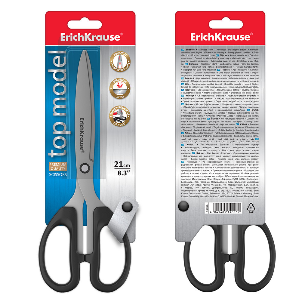 Se cerchi un taglio preciso e senza sforzo per il tuo ufficio, le forbici da ufficio ErichKrause modello Top sono la scelta ideale. Realizzate con lame ad arco in acciaio inossidabile di alta qualità, queste forbici garantiscono una precisione impeccabile su ogni materiale, grazie alla loro doppia affilatura avanzata.