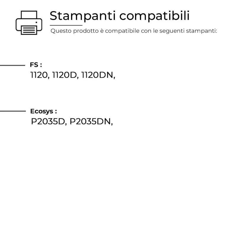 Questo Toner per Kyocera è pienamente compatibile con molteplici modelli di stampanti KYOCERA e assicura una resa di stampa elevata e costante, paragonabile a quella dei prodotti originali. Progettato per offrire affidabilità e precisione.