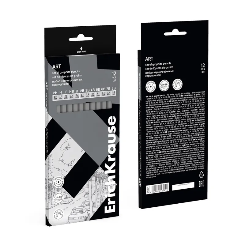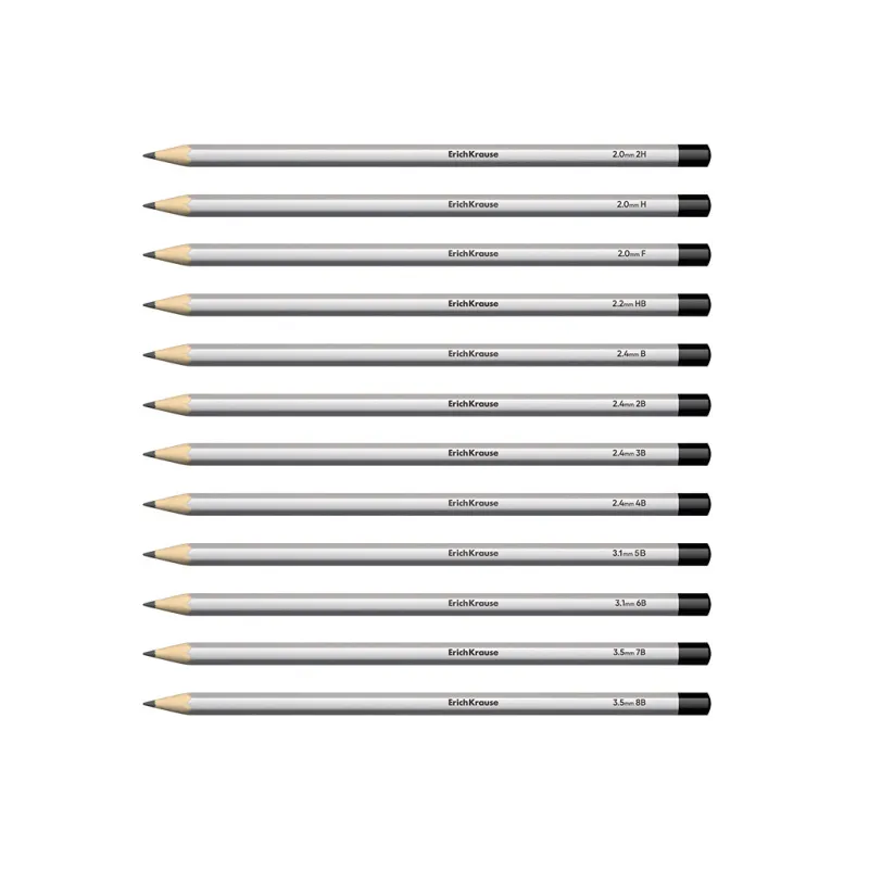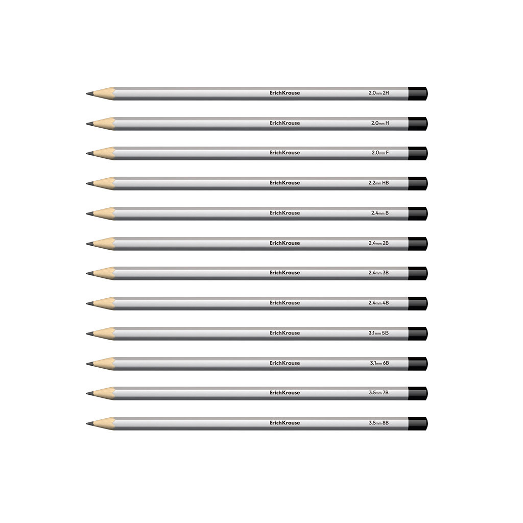 Set di 12 matite di grafite ErichKrause Art, esagonali, 2Н, Н, F, HB, В, 2В, 3В, 4В, 5В, 6В, 7В, 8В (in scatola)