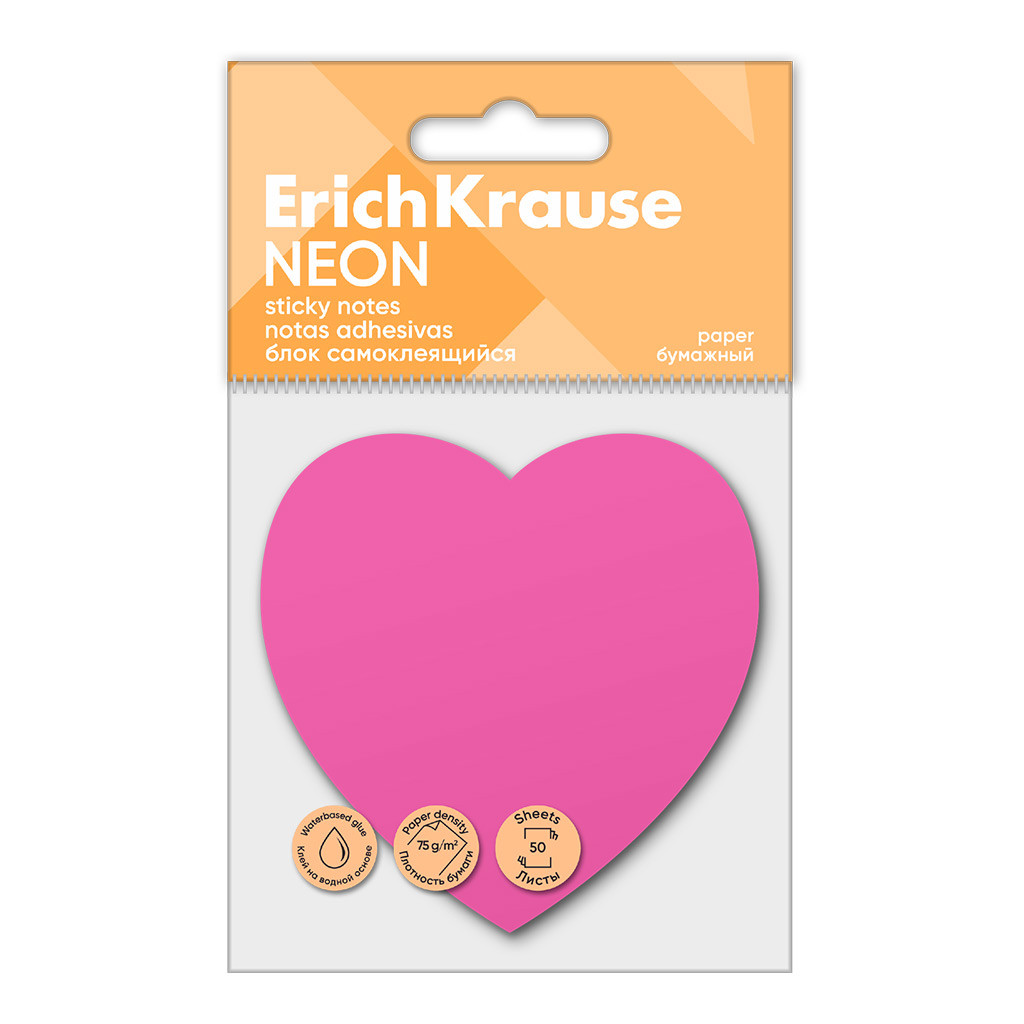 Post-it Sticky notes ErichKrause Neon, Cuore, 50 fogli, Rosa