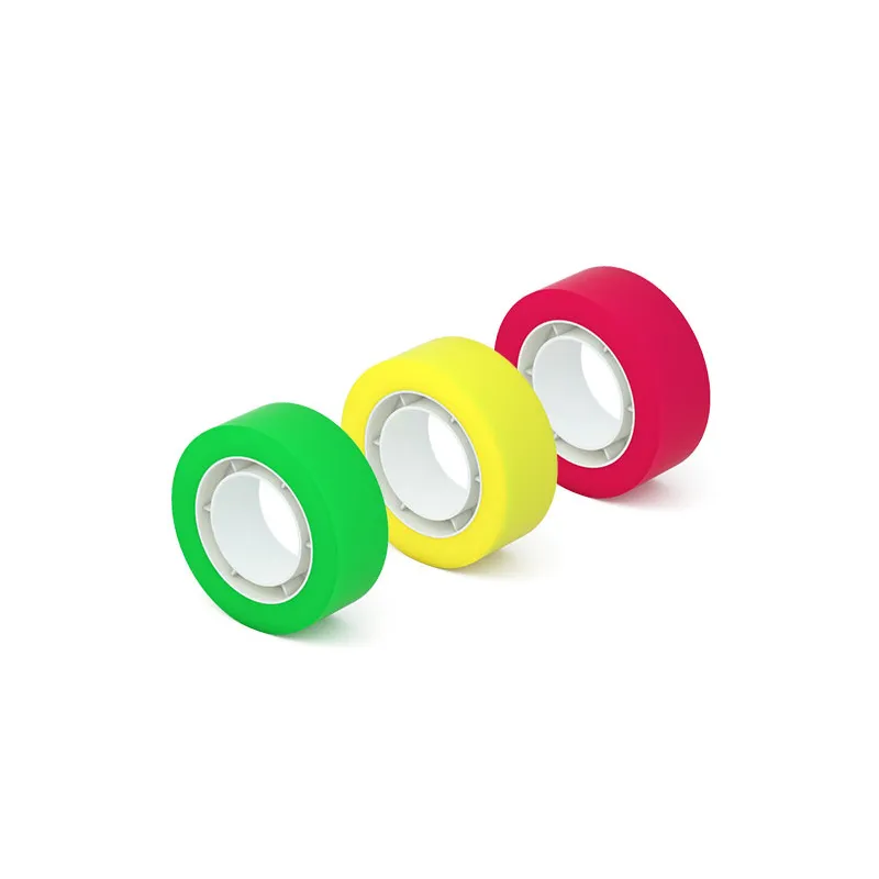 3 nastri adesivi colorati con superficie opaca antiriflesso con la possibilità di applicarvi un testo.
