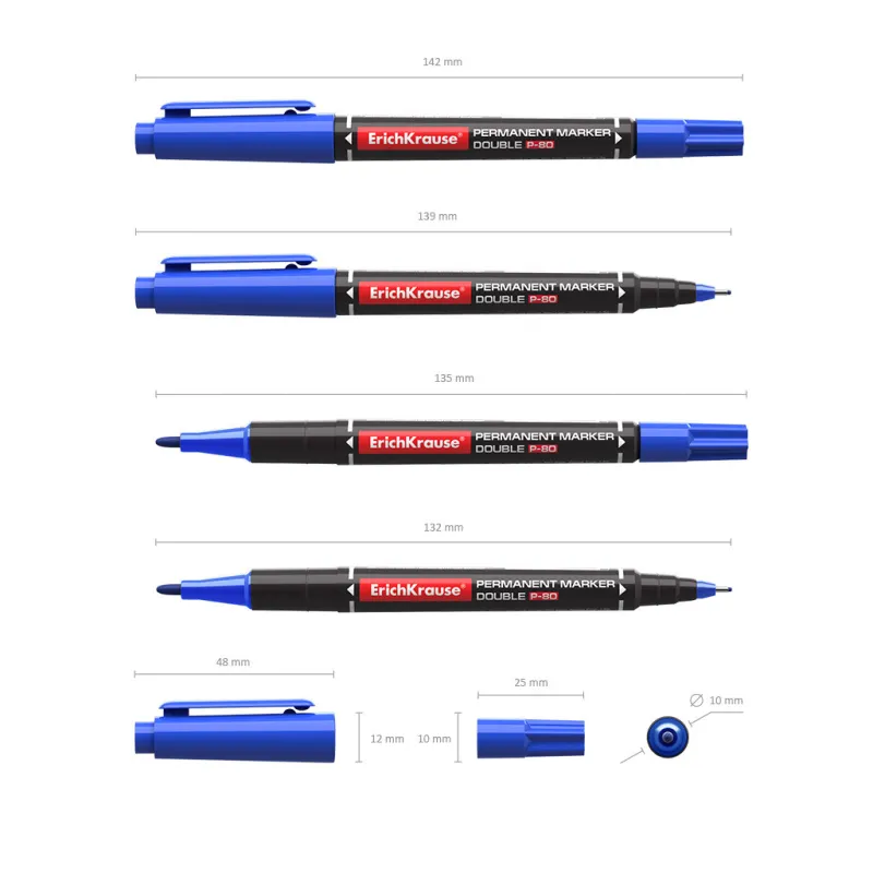 Set di 3 pennarelli indelebili bifacciali ErichKrause Double P-80, colore inchiostro: nero, blu, rosso