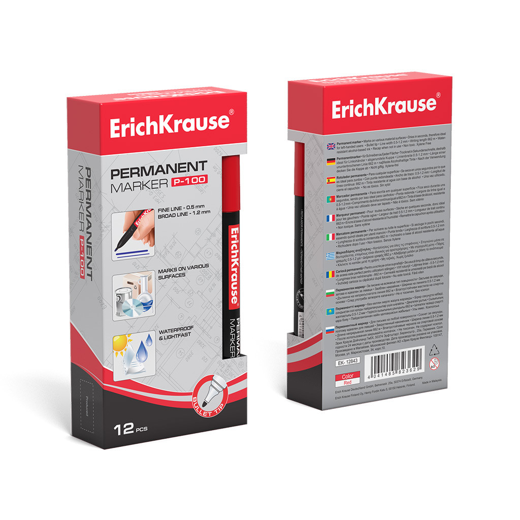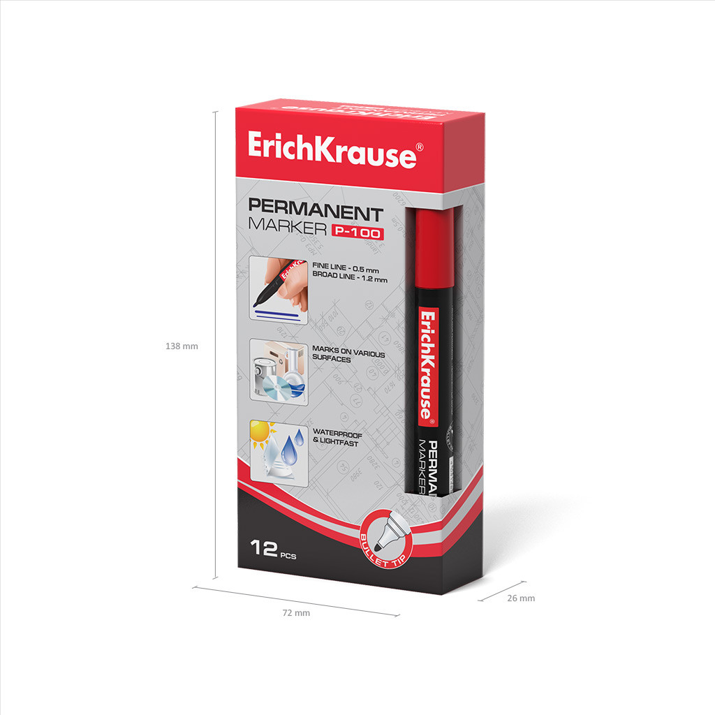 1 Marcatore permanente ErichKrause P-100, colore inchiostro: Rosso