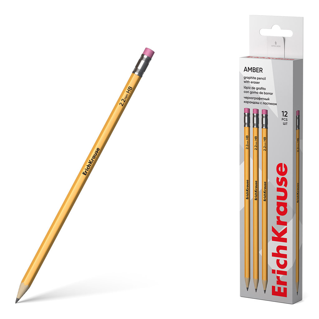 Matita di grafite ErichKrause Amber, esagonale, con gomma, HB (in confezione da 12 pz.)