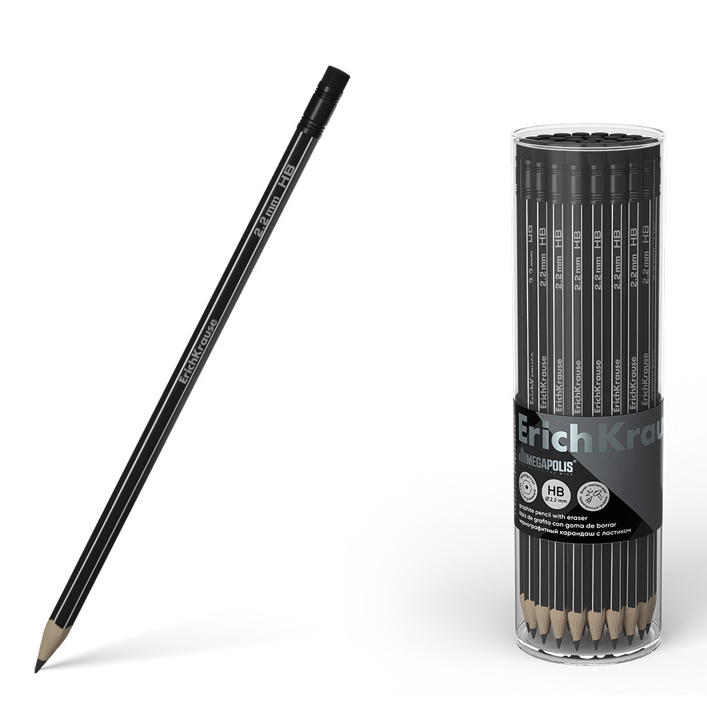 Matita di grafite ErichKrause MEGAPOLIS, esagonale, con gomma HB (in tubo da 42 pz.)