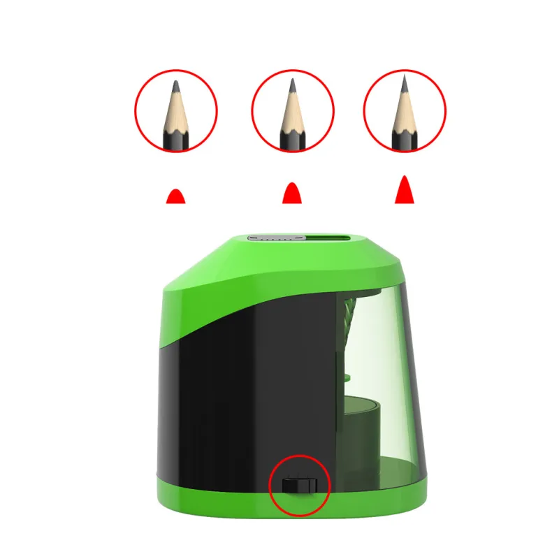 Il temperino ha un foro di 8 mm e tre impostazioni di affilatura, adatte a temperare matite standard a mina nera e a colori.
