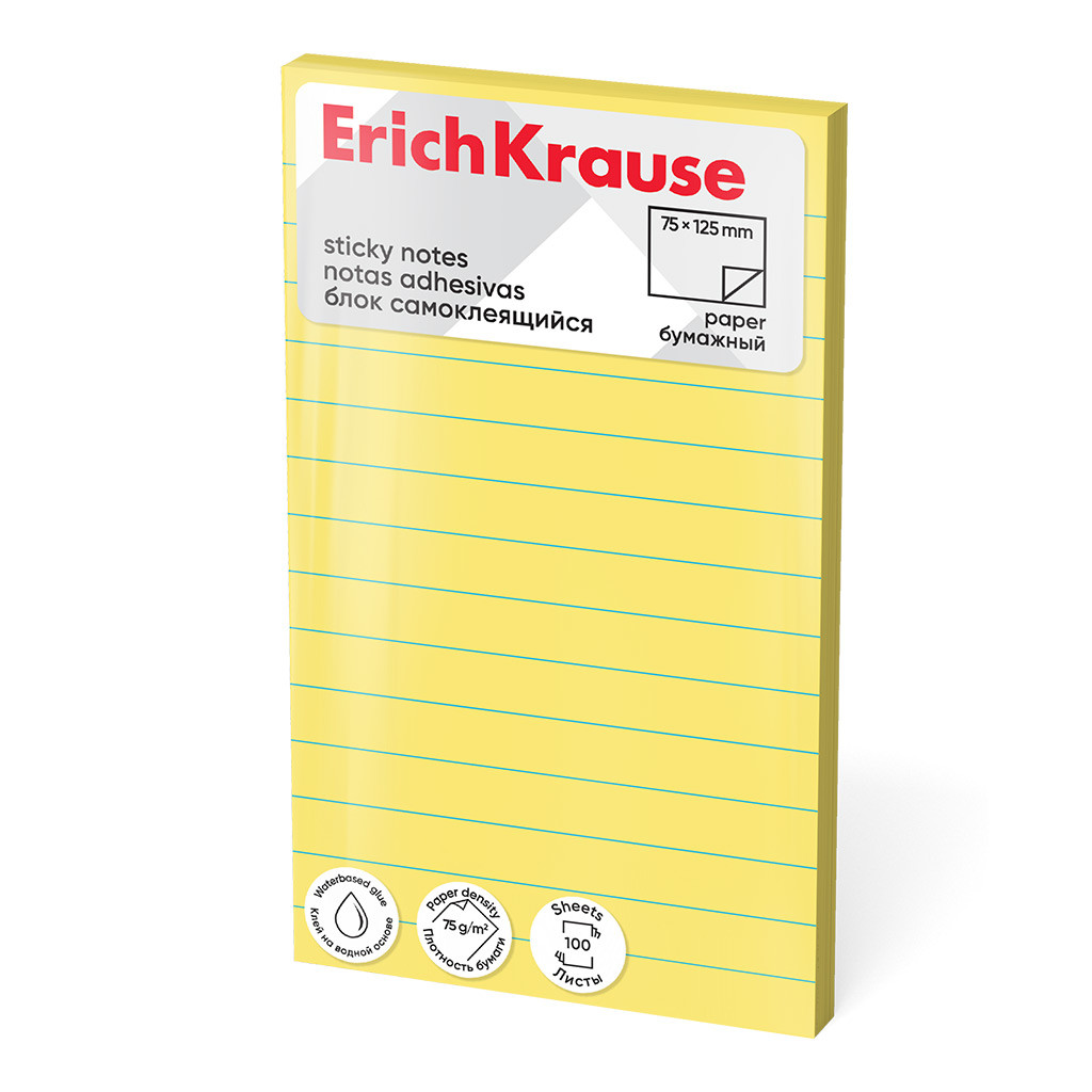 Block notes adesivo ErichKrause 125х75 mm, 100 fogli, giallo