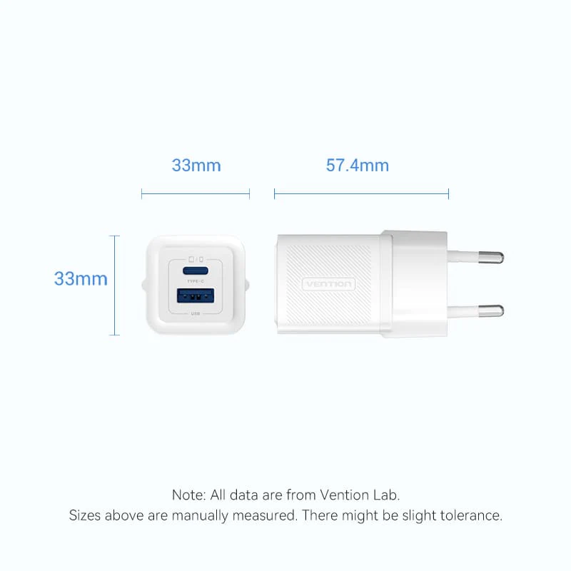 Caricatore Vention GaN 30W Bianco – 2 Porte USB-C + USB-A, Spina EU, Ricarica Rapida e Compatta | Vention