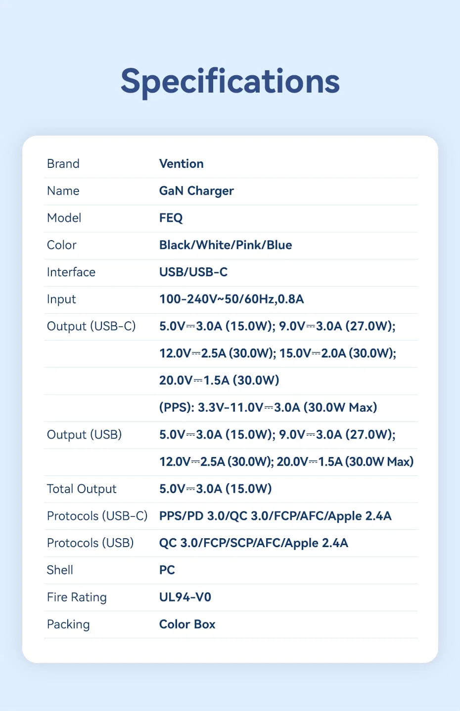 Il Caricatore Vention GaN da 30W in colore nero offre una ricarica potente, sicura e altamente efficiente grazie alla moderna tecnologia GaN (nitruro di gallio). Questa tecnologia consente prestazioni elevate con dimensioni ridotte, generando meno calore e garantendo un funzionamento più stabile e duraturo.