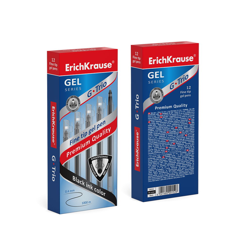 Penna a inchiostro gel ErichKrause G-Trio Stick Classic 0.5, colore inchiostro: nero (confezione da 12 pezzi)