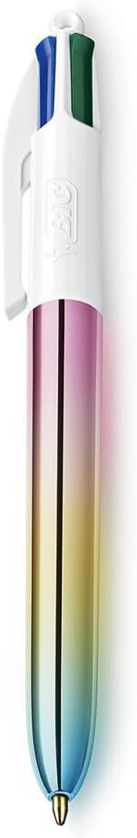 A rendere questa versione speciale è il fusto con effetto metallico sfumato “Gradient”, che combina più tonalità lucide per un look moderno e distintivo, perfetto anche come idea regalo o per dare personalità alla tua scrivania. E soprattutto, è una penna ricaricabile: quando un colore termina puoi sostituire le cartucce con le ricariche compatibili per BIC 4 Colours, semplicemente svitando la penna e inserendo la nuova ricarica, così continui a usarla a lungo senza rinunciare alla praticità dei quattro colori in un solo corpo penna, con un discreto risparmio.
