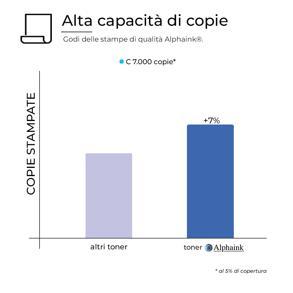 Perfetto per uffici, studi professionali e uso domestico intensivo, il toner Alphaink è semplice da installare e pronto all’uso. Con le sue prestazioni costanti, riduce i costi di stampa e offre un’ottima durata nel tempo.