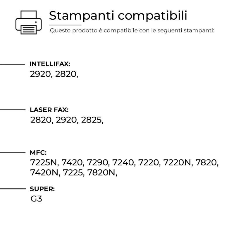 - Compatibilità totale con le stampanti Brother che utilizzano il tamburo