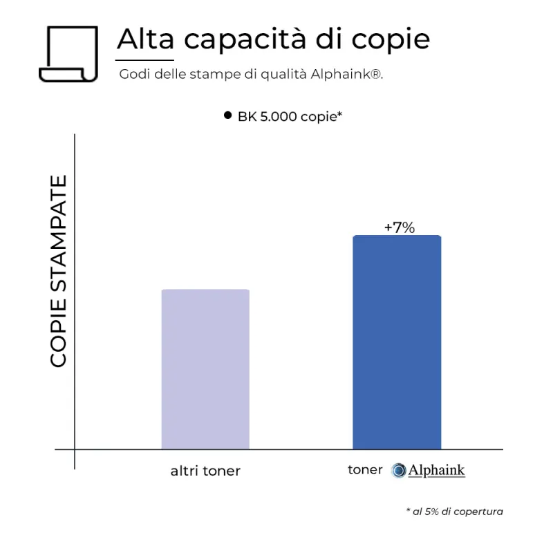 Perfetto per uffici, studi professionali e uso domestico intensivo, il toner Alphaink è semplice da installare e pronto all’uso. Con le sue prestazioni costanti, riduce i costi di stampa e offre un’ottima durata nel tempo.