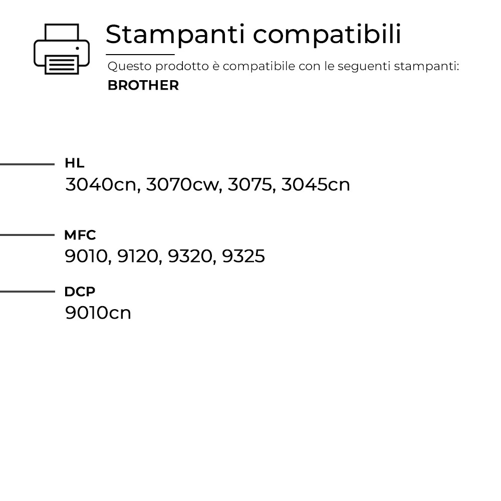 Questo Toner per Brother è pienamente compatibile con molteplici modelli di stampanti BROTHER e assicura una resa di stampa elevata e costante, paragonabile a quella dei prodotti originali. Progettato per offrire affidabilità e precisione.