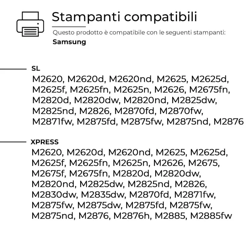 - Compatibilità totale con le stampanti Samsung che utilizzano il tamburo