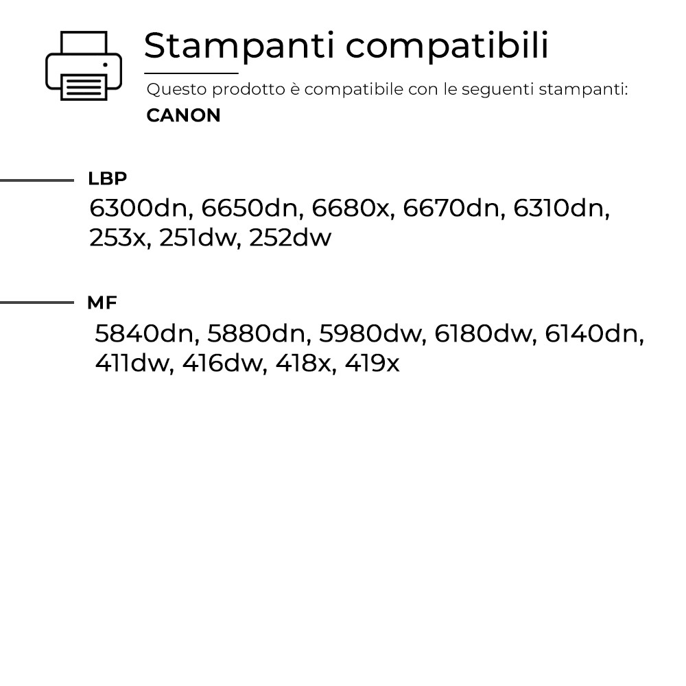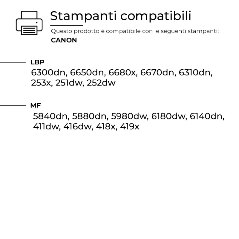 Questo Toner per HP è pienamente compatibile con molteplici modelli di stampanti HP e assicura una resa di stampa elevata e costante, paragonabile a quella dei prodotti originali. Progettato per offrire affidabilità e precisione.