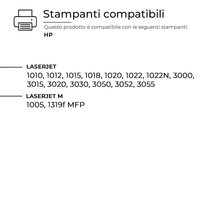 Questo Toner per HP è pienamente compatibile con molteplici modelli di stampanti HP e assicura una resa di stampa elevata e costante, paragonabile a quella dei prodotti originali. Progettato per offrire affidabilità e precisione.