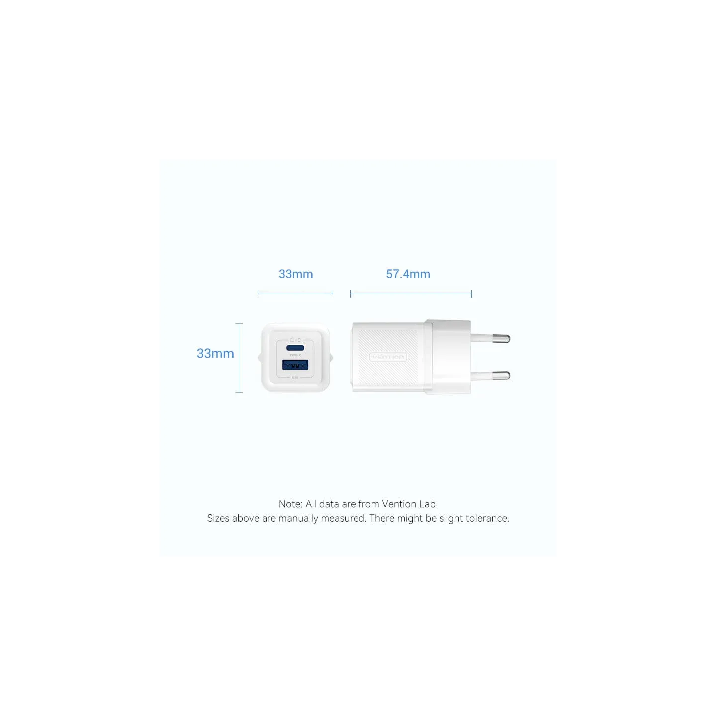Caricatore Vention Bianco GaN 2 Porte USB-C + USB-A 30W/30W – Spina EU – Ricarica Rapida e Compatta