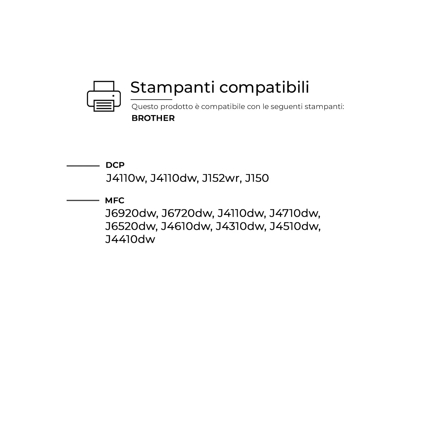 Queste Cartucce per Brother sono pienamente compatibili con molteplici modelli di stampante BROTHER e assicurano una resa di stampa elevata e costante, paragonabile a quella dei prodotti originali. Progettate per offrire affidabilità e precisione.