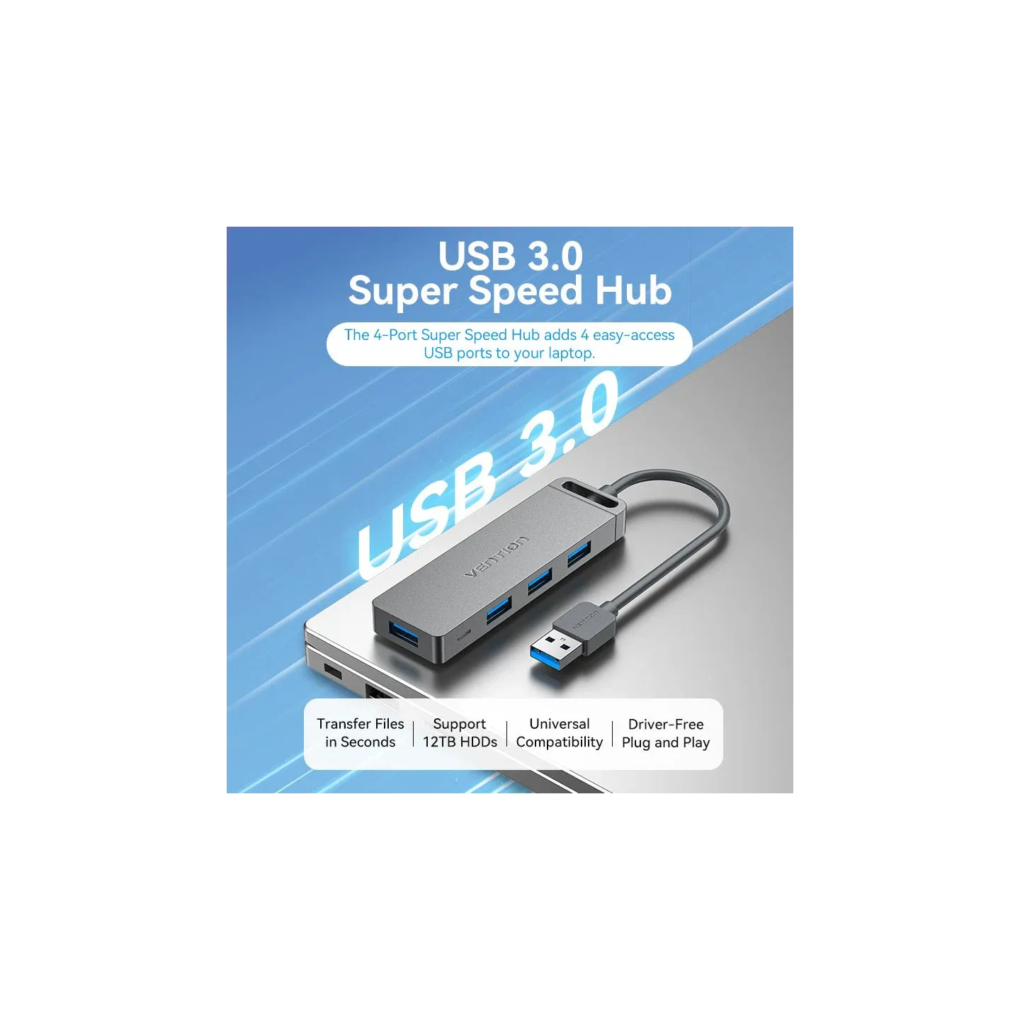 Hub USB 3.0 a 4 porte Vention – Espansione rapida e sicura per dispositivi USB