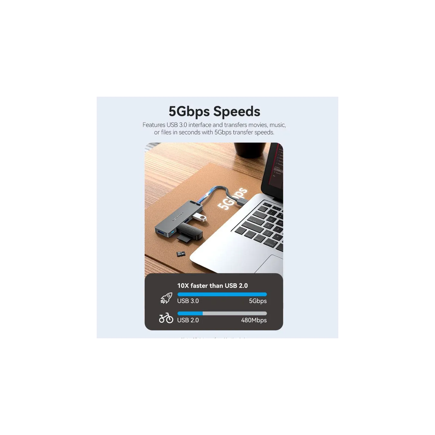 Velocità di trasferimento dati: Supporta velocità fino a 5 Gbps, permettendo trasferimenti rapidi e efficienti.