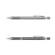Matita meccanica con fusto rotondo e impugnatura profilata, pinza metallica e caricamento automatico della mina.