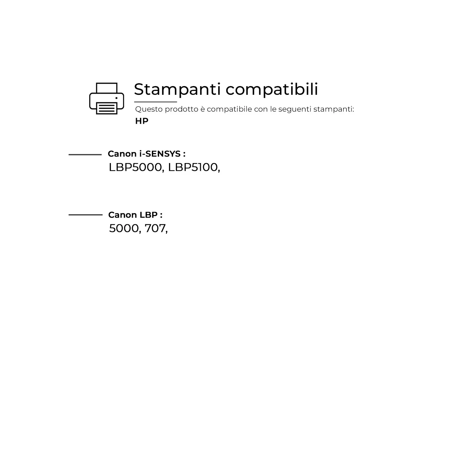 Questo Toner per HP è pienamente compatibile con molteplici modelli di stampanti HP e assicura una resa di stampa elevata e costante, paragonabile a quella dei prodotti originali. Progettato per offrire affidabilità e precisione.